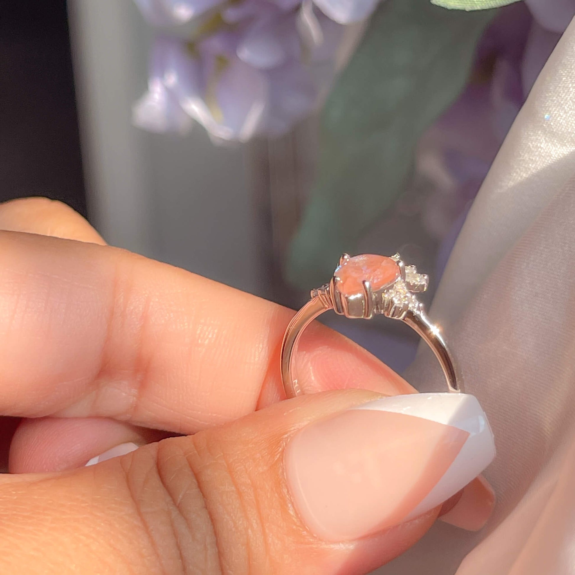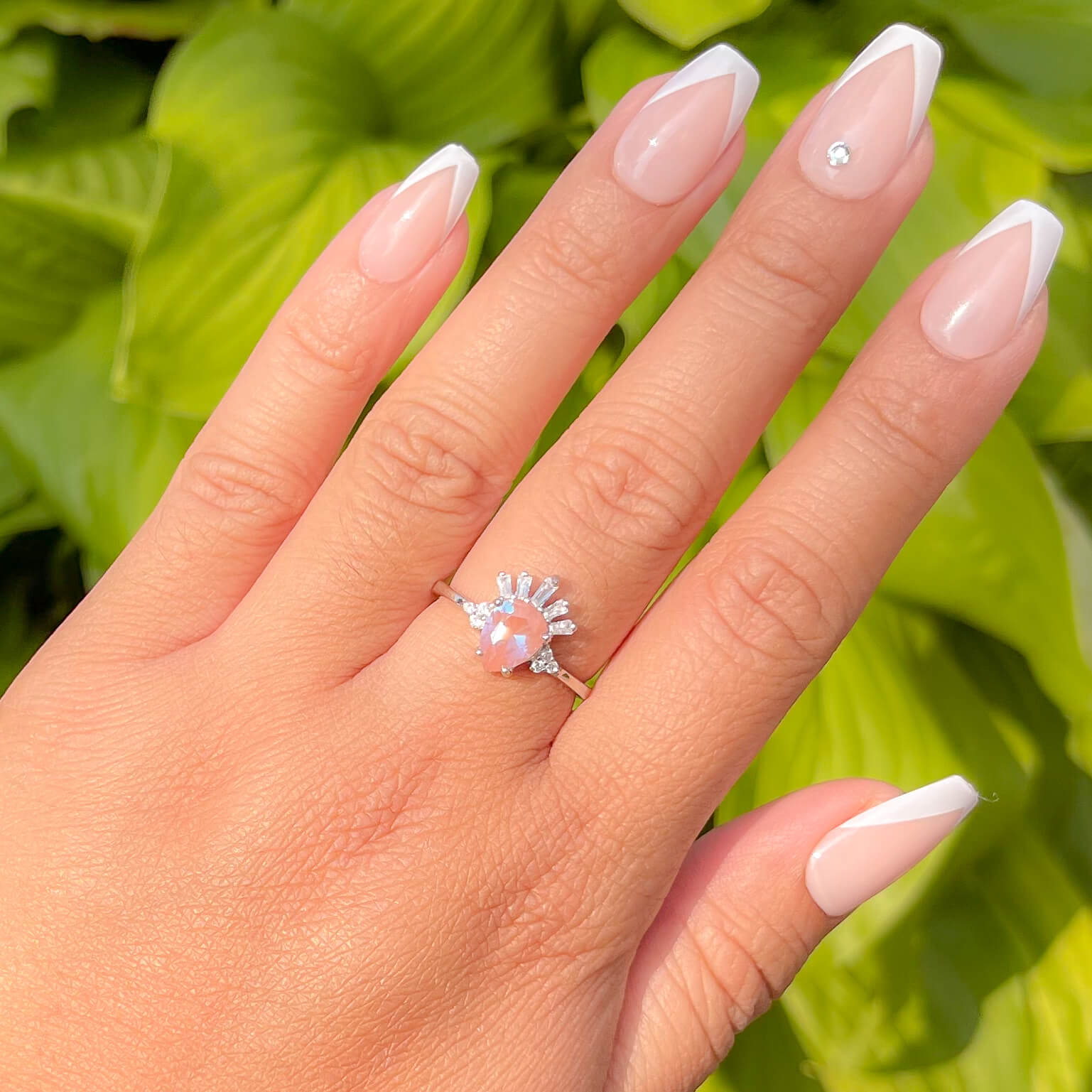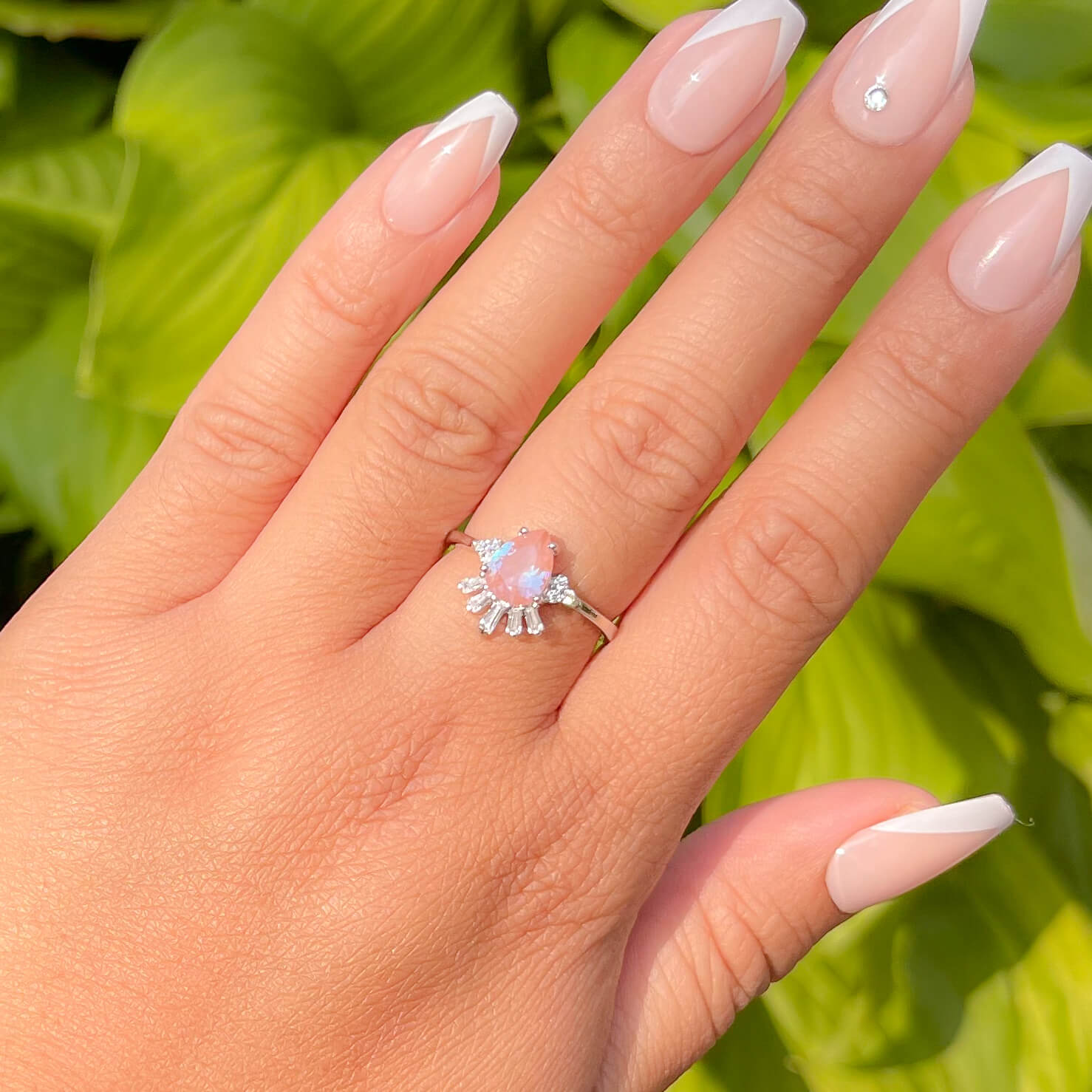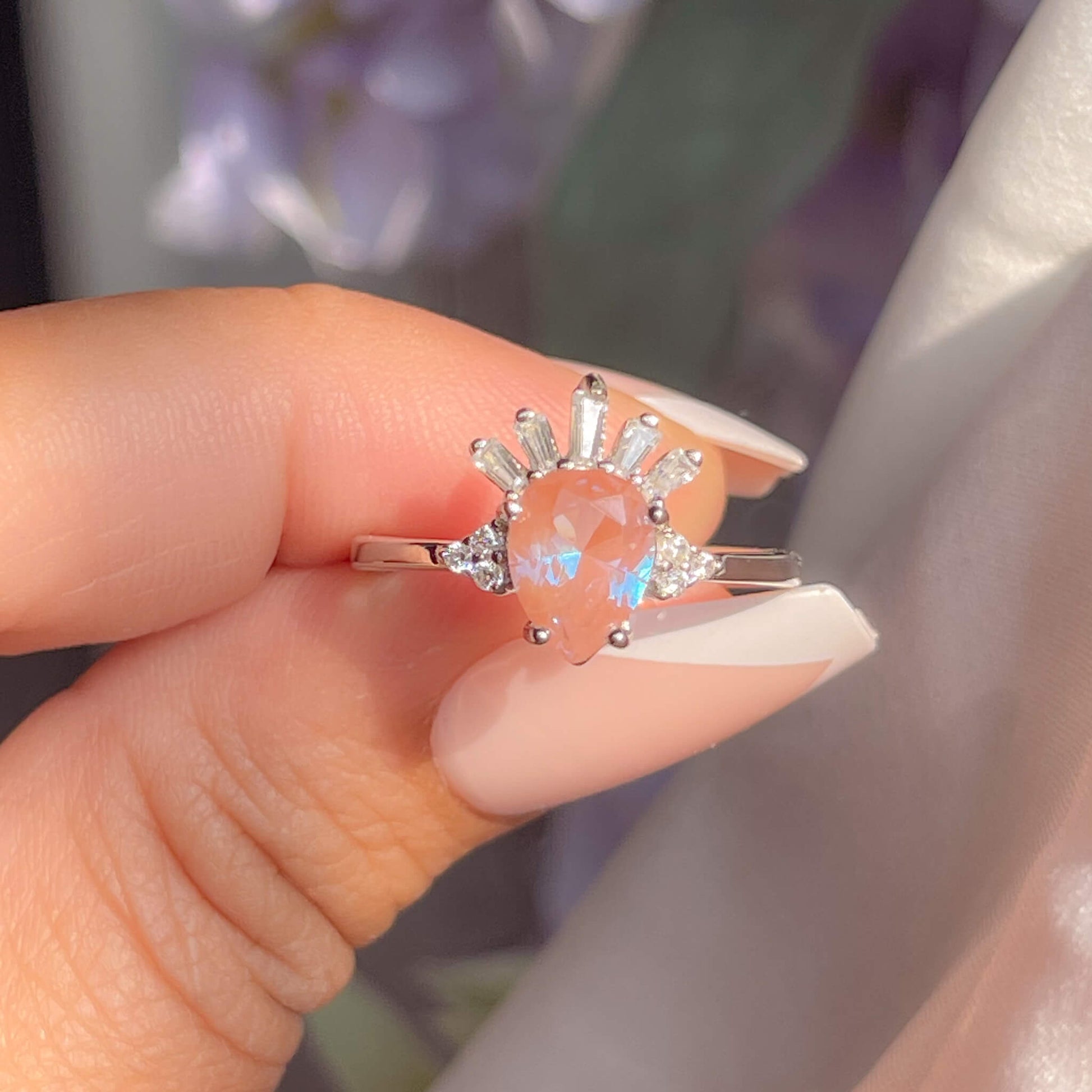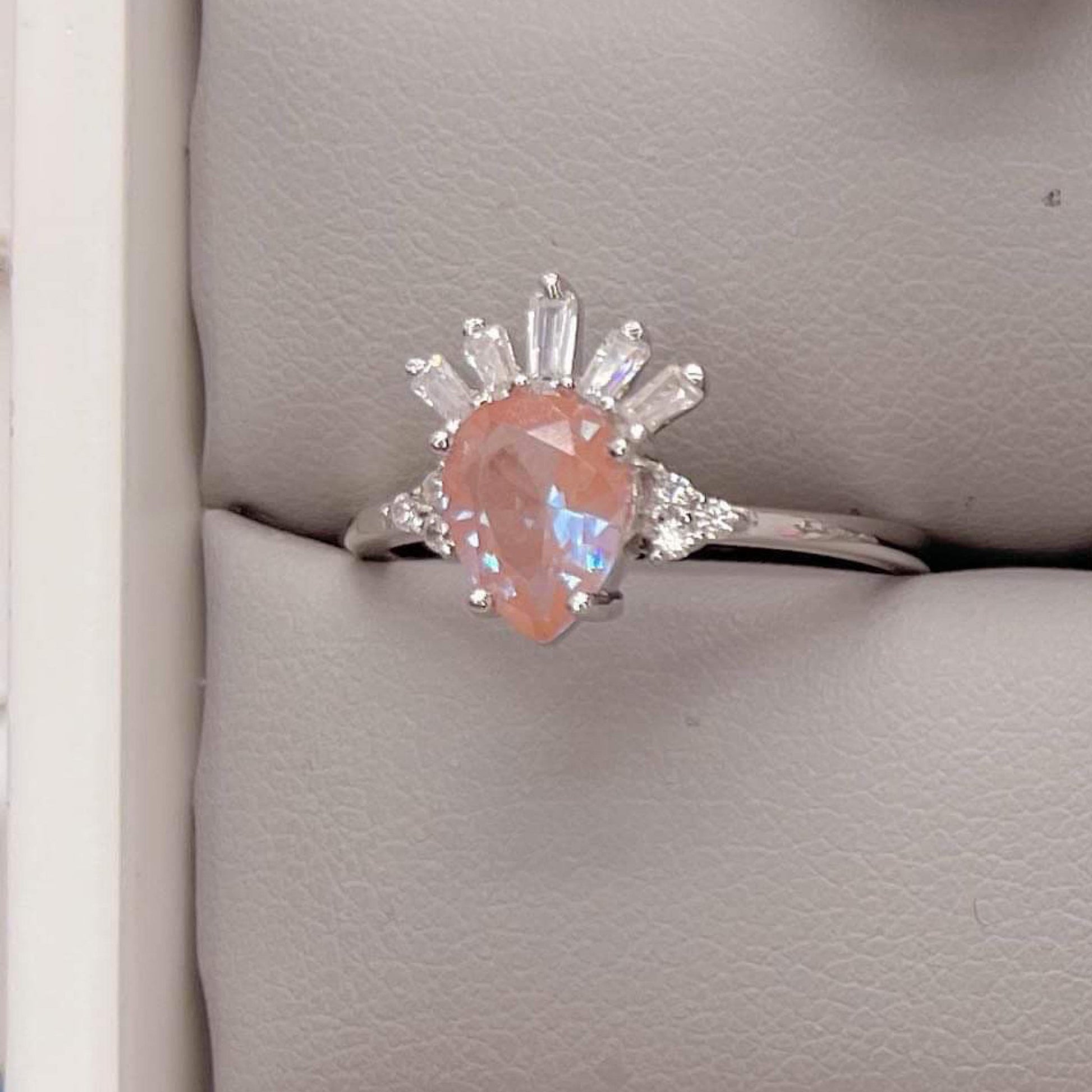 The Angel Ring is a celestial-inspired masterpiece, featuring a pear-cut gemstone crowned with brilliant baguette and round-cut stones. Designed to resemble the glow of a sunrise, this ring is bold, elegant, and ethereal, making it perfect for those who love unique statement pieces.